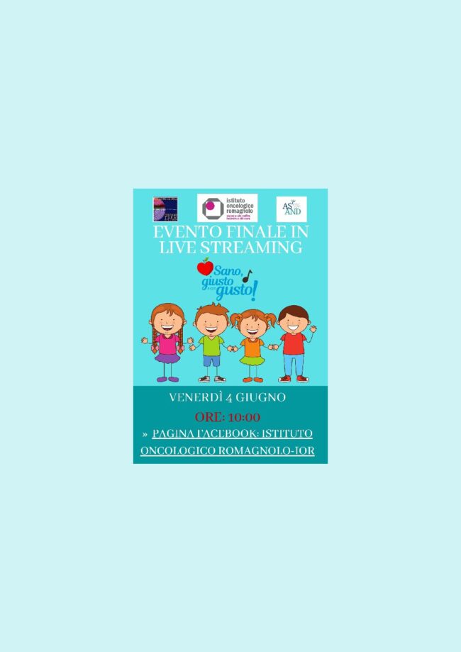 Evento finale della seconda edizione del progetto Sano, giusto e con gusto!: il progetto di volontariato per una sana e sostenibile alimentazione rivolto a genitori, insegnanti, bambini e ragazzi. L’evento in diretta, realizzato il 4 giugno 2021, resterà registrato sulla pagina Facebook dell’Istituto Oncologico Romagnolo-IOR.